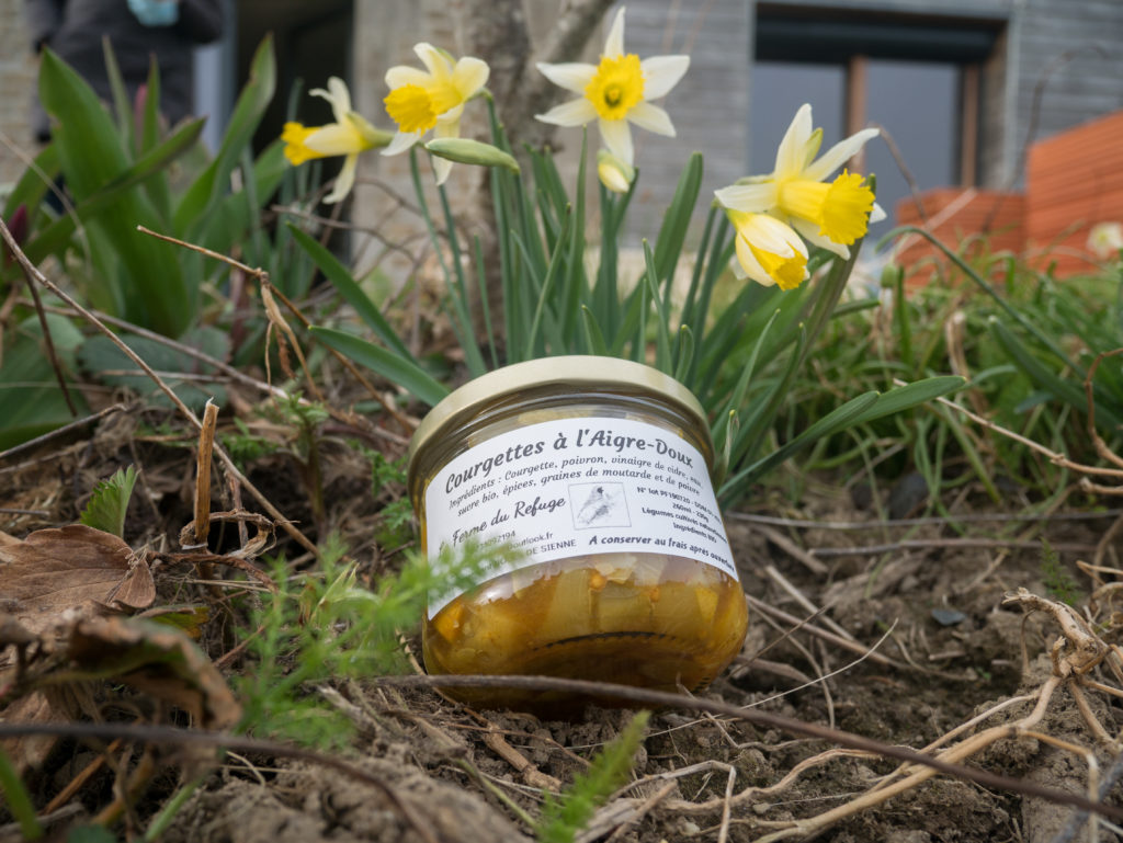 Installés depuis janvier 2020 en tant que maraîchers à Fontenermont, Gaëlle et Sylvain cultivent et transforment leurs fruits et légumes sous diverses recettes : courgettes à l’aigre-doux, chutney de poivron, confit d’oignon, et les légumes lactofermentés avec comme produit phare “La choucroute artisanale de Normandie”. La ferme du Refuge cultive naturellement dans l’esprit de la permaculture et le paillage sur sol vivant. Ils vendent le surplus de légumes de saison.