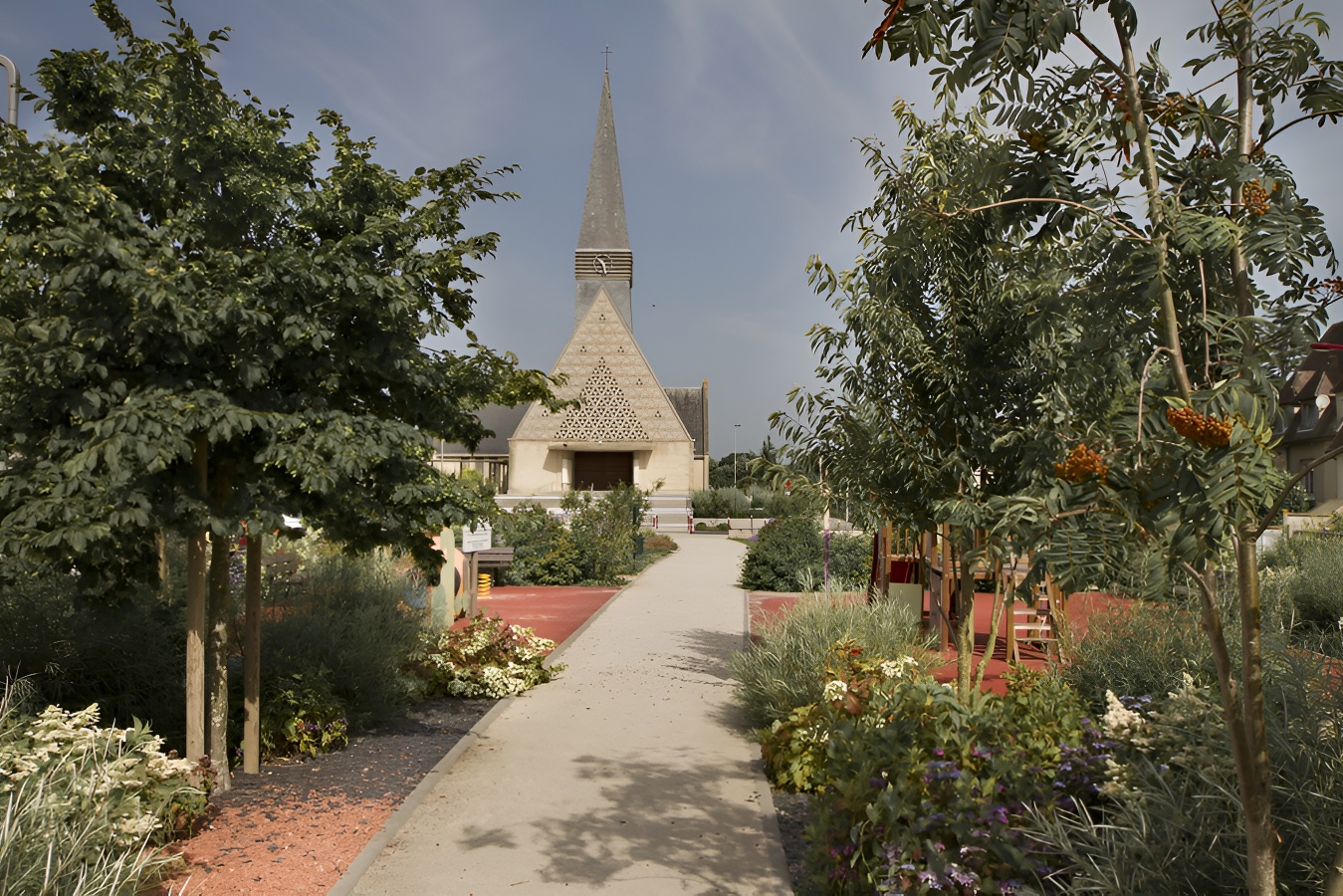 La reconstruction de la commune est confiée à deux personnes, un architecte urbaniste Gilbert Hallier et un architecte en chef, Pierre Dureuil. Chaque ville sinistrée devait désigner un urbaniste en chef et un architecte en chef, les activités du second étant logiquement soumises au projet général établi par le premier. L’architecte en chef, devait coordonner les projets de ses confrères chargés d’un îlot ou d’un immeuble et de vérifier la conformité avec le Plan de Reconstruction et d’Aménagement.