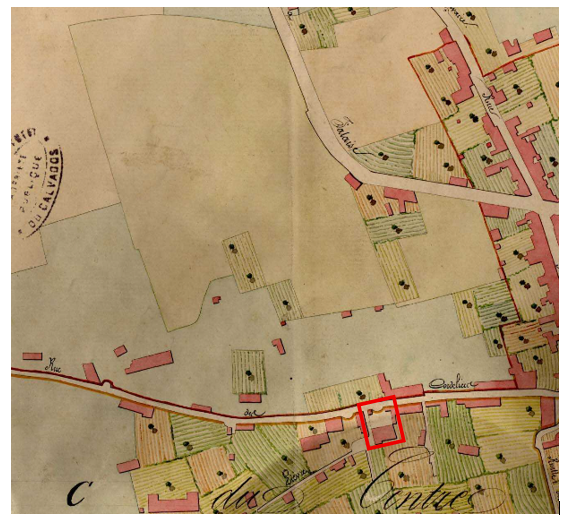 Plan de Vire quelques années avant la création de la rue, la sous-préfecture entourée en rouge