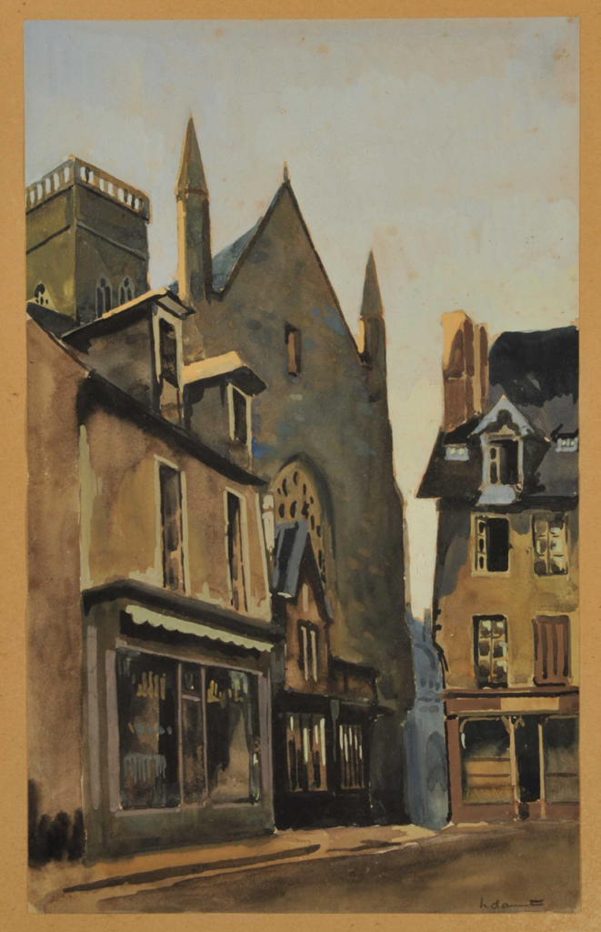 Cette gouache signée Henri Dannet, peintre normand du début du 20e siècle, représente ce passage avec une précision unique. C’est la seule image connue de cet espace aujourd’hui disparu.