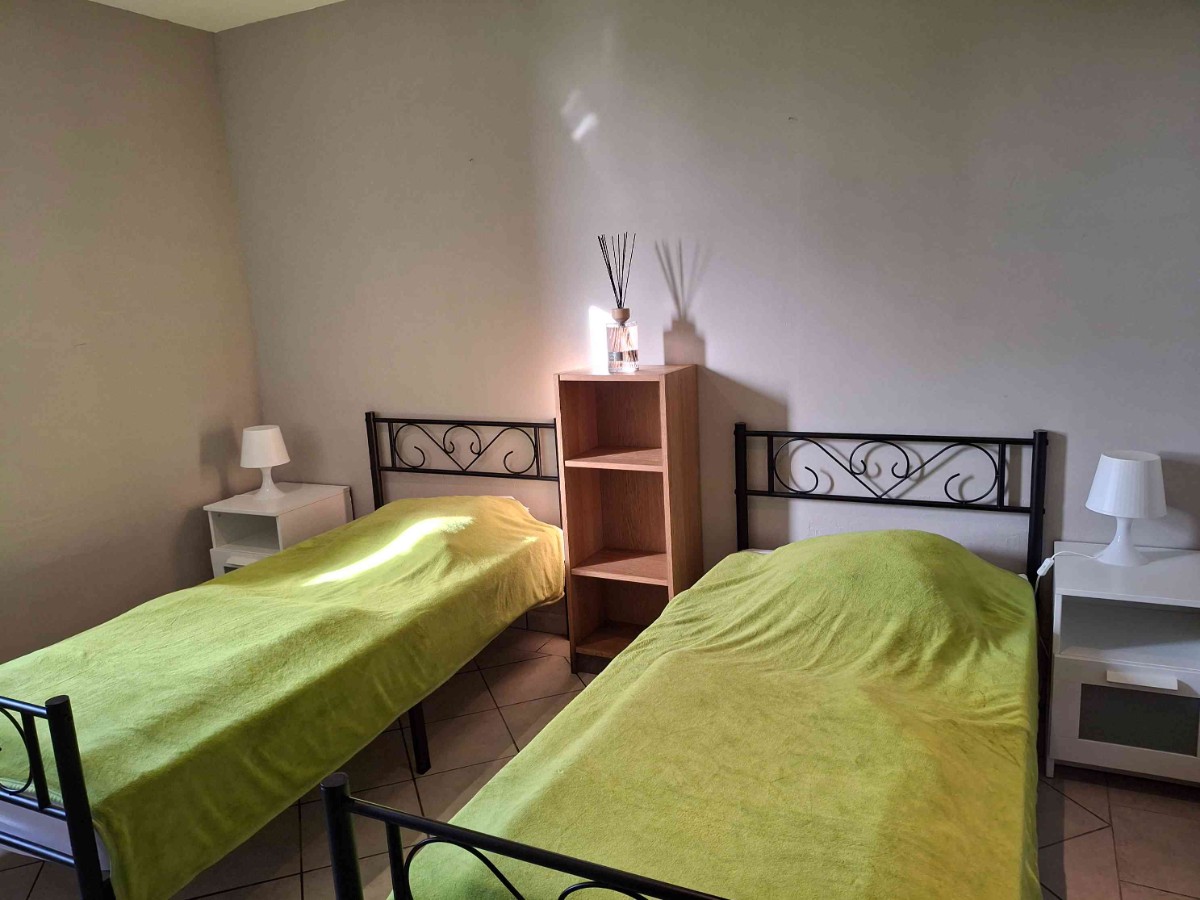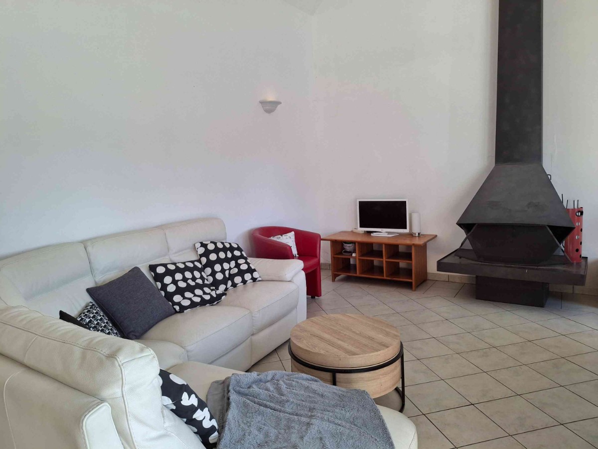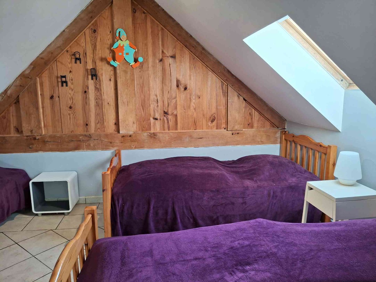 R-d-c : séjour avec espace salon, cheminée (canapés, fauteuils), cuisine américaine, 2 ch (2 lits 1 pers), salle d’eau avec wc. Etage : 3 ch (2, 2 et 3 lits), 1 salle de bains, wc. Chauffage central. LL. LV. TV. WIFI. Terrasse. Jardin avec salon de jardin.
