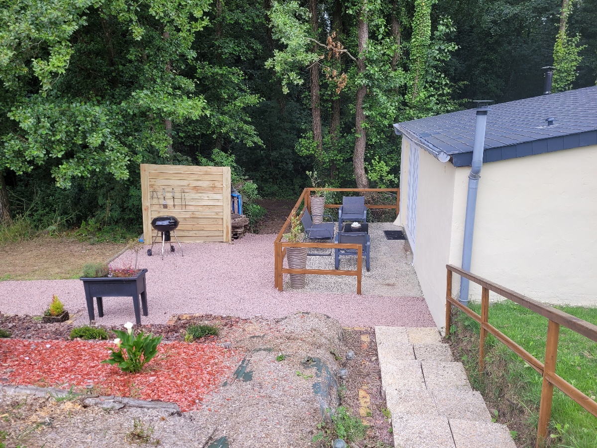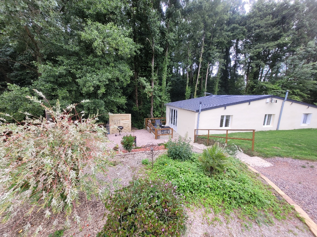 Extérieur : espace barbecue privatif. Espace spa en commun. Un bois et un étang. Pédalo, barque. Possibilité restauration sur place (Snack).