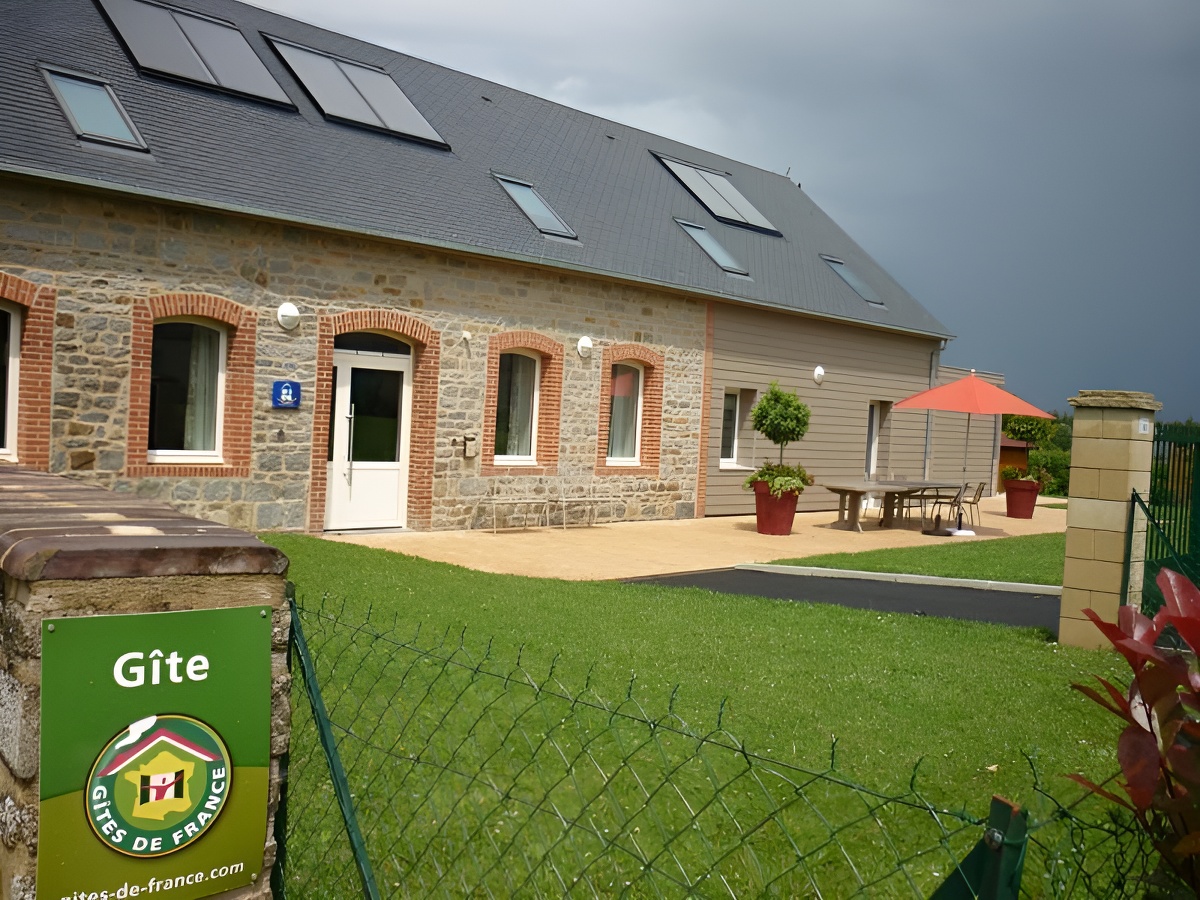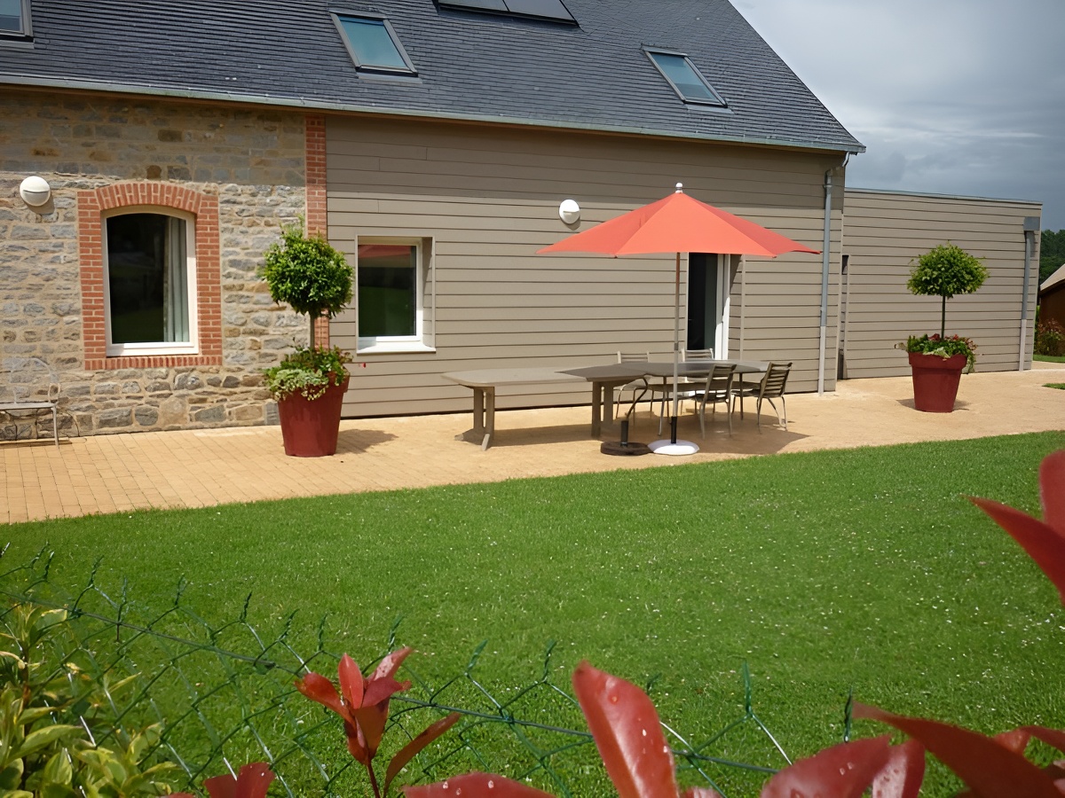 Ces anciennes écuries rénovées offrent un intérieur spacieux. L’aménagement contemporain et la décoration harmonieuse sont autant d’atouts. En groupe ou en famille, vous apprécierez la localisation de St Sever, ville étape des chemins de St Michel avec sa forêt domaniale. A 40 minutes des plages de la Manche (Granville) et de la baie du Mont Saint Michel. Grande maison indépendante. Rdc : grand séjour avec espace salon (canapés, fauteuils), cheminée insert, espace repas, cuisine aménagée, wc, 1 ch (1 lit 140, 2 lits 90) avec salle d’eau. Étage : 4 ch de 3 lits 90 chacune, 2 salles d’eau, 2 wc. Chauff. élec. Chauffe-eau solaire. LL. LV. TV. Tél. wifi. Jardin, terrasse, salle de jardin. Abri vélos.