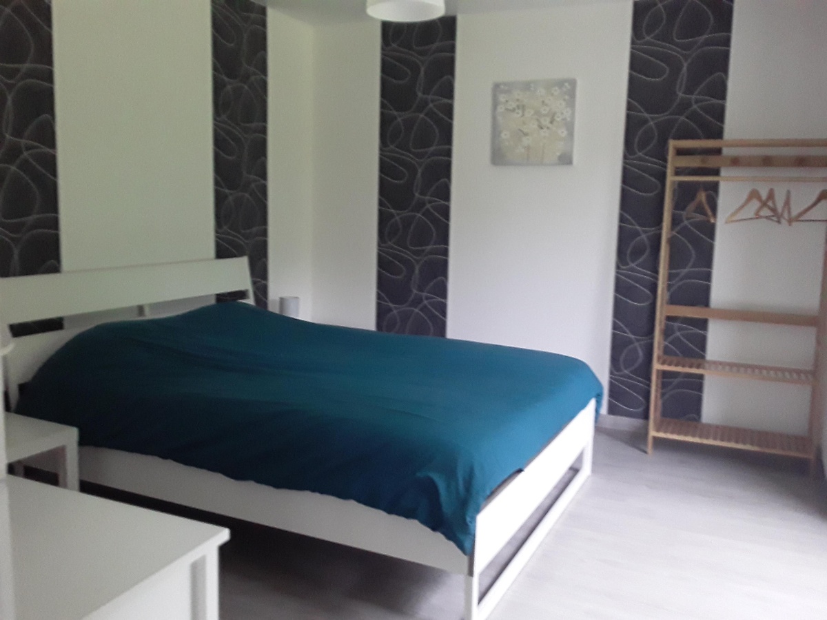 Rez-de-chaussée : cuisine, salle/salon, chambre avec un lit 160×190, salle de bain (accessible par la chambre), buanderie, WC.