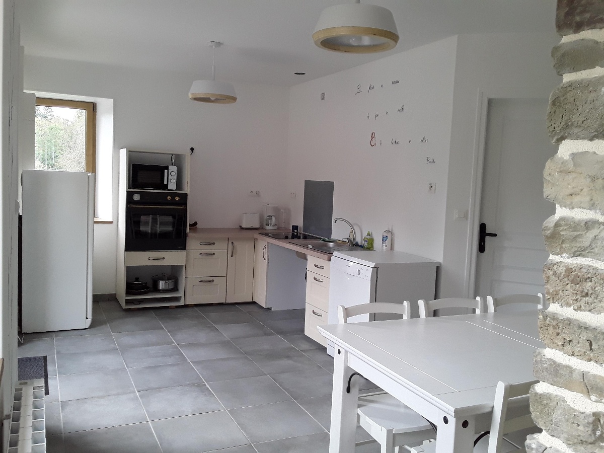 Au rez-de-chaussée, le gîte est conçu pour accueillir les personnes à mobilité réduite, la cuisine, la salle de bain et la chambre ont été aménagées à cet effet.