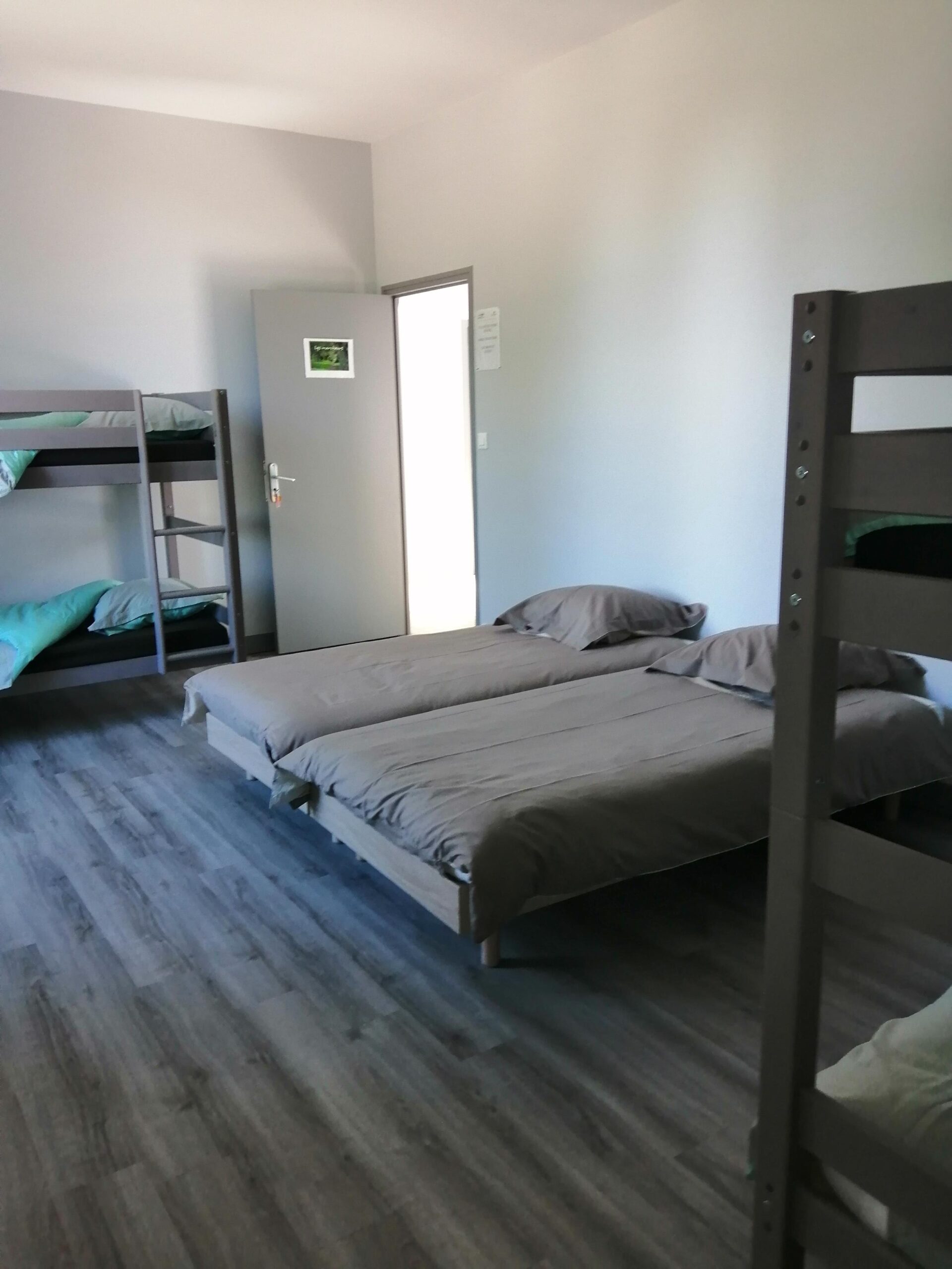 Les chambres possèdent toutes un portant à vêtements et sont équipées soit d’un lit double, soit de lits simples superposés.
