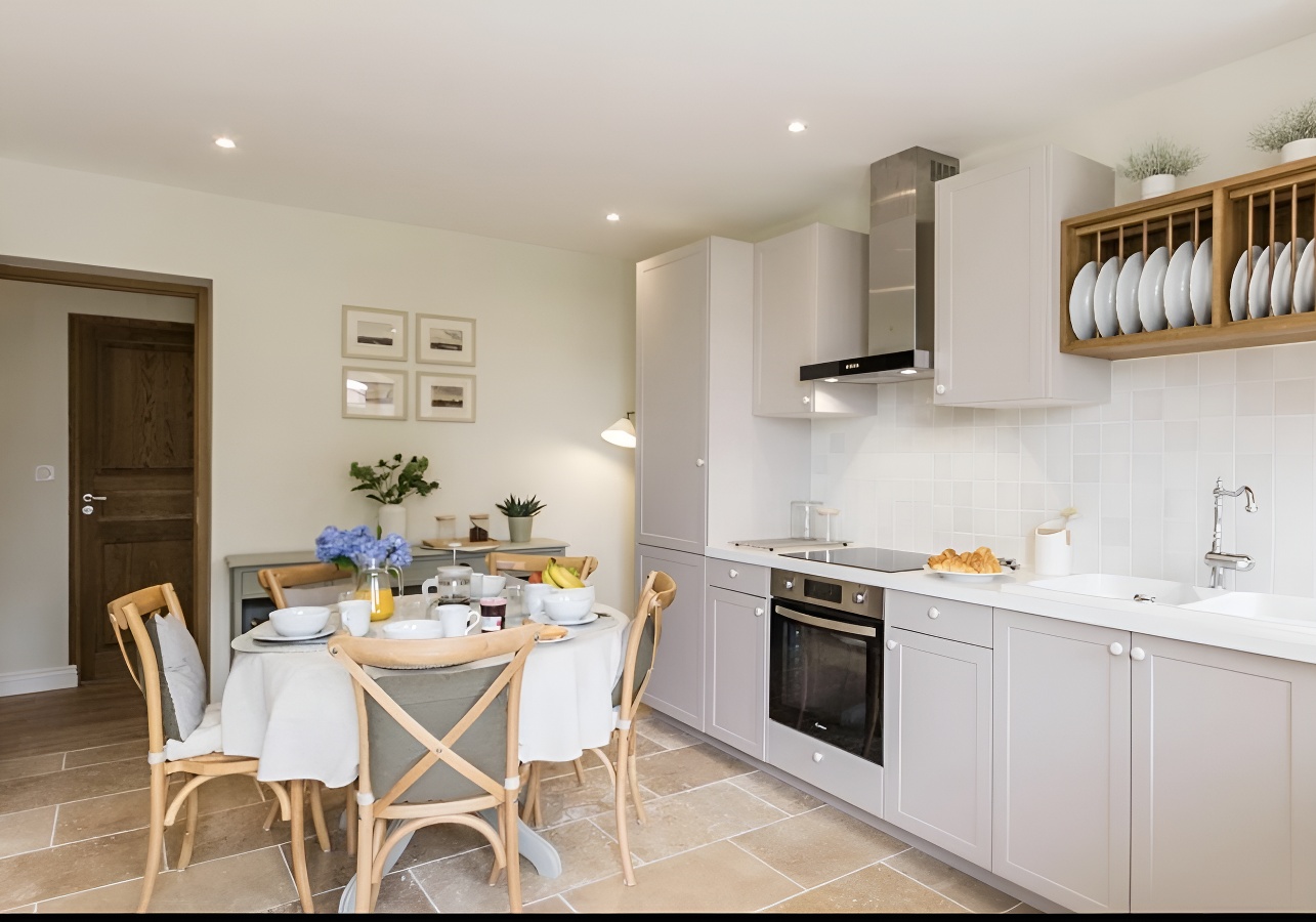 Vous entrez dans une cuisine/salle à manger très bien équipée, qui jouxte le salon agrémenté d’un poêle à bois, endroit idéal pour se détendre après une journée de découverte ou de sport.