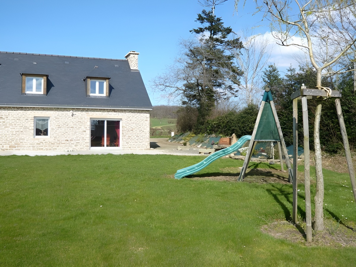 Tournée vers une campagne vallonnée, cette grande maison restaurée est l’endroit idéal pour un séjour entre amis ou en famille. Calme, espace, confort et nombreuses activités à proximité (randonnée, saut à l’élastique, Gorges de la Vire). Sur la route du Mont-St-Michel. Maison indépendante. Rez-de-chaussée : séjour avec espace-salon (canapés, fauteuils), espace cuisine, 1 chambre (2 lits 1 personne), cheminée-insert, salle d’eau, WC. Étage : 4 chambres (1 lit 2 personnes, 8 lits 1 personne dont 2 superposés, lit bébé), salle de bain avec WC. Chauffage central. Lave-linge. Lave-vaisselle. Grand jardin avec terrasse, portique et salon de jardin.