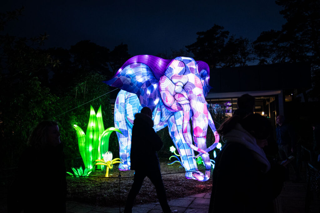 Dès la nuit tombée, le zoo se transforme en un parcours nocturne enchanté. Sur 1,5 km, plus de 600 créations lumineuses jalonnent le sentier : perroquets, lions, pandas, chevaux, poissons, éléphants, arbres et fleurs géantes… Chaque pas révèle une nouvelle scène, une surprise, un éclat de couleur dans la nuit.