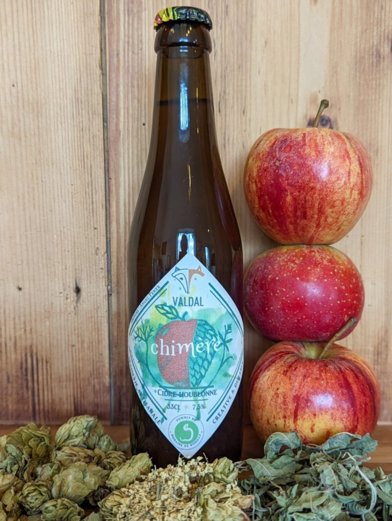 Valdal et le Domaine de Romilly s’associent pour vous proposer « la Chimère », un cidre extra brut, fermenté façon brasseur et infusé avec du houblon normand et des plantes du bocage (à partir de 3,2€). 🌱