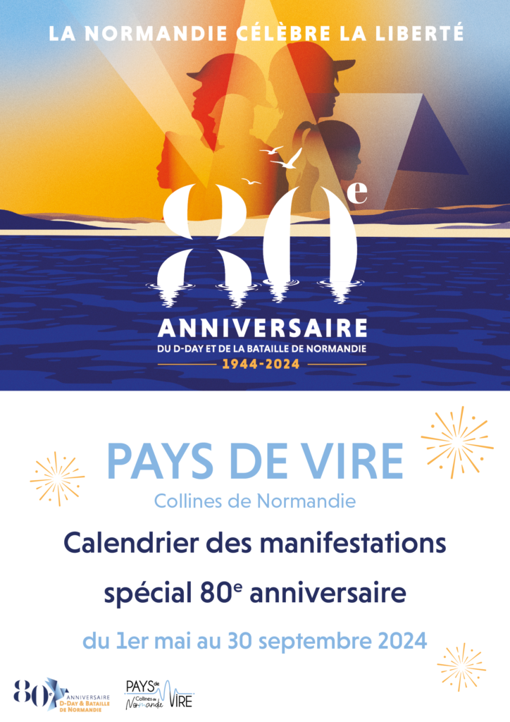 Nous sommes ravis d’annoncer la sortie de notre guide des manifestations organisées pour le 80e anniversaire de la Libération. Tous les événements, répartis dans tout le Pays de Vire, vous offriront l’occasion de découvrir d’autres facettes de la Seconde Guerre mondiale. La brochure sera disponible à partir du lundi 13 mai dans les trois antennes de l’Office de Tourisme du Pays de Vire, à Vire, Villers-Bocage et Condé-sur-Noireau.
