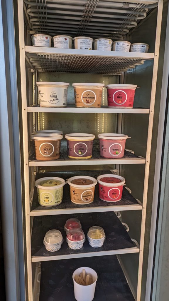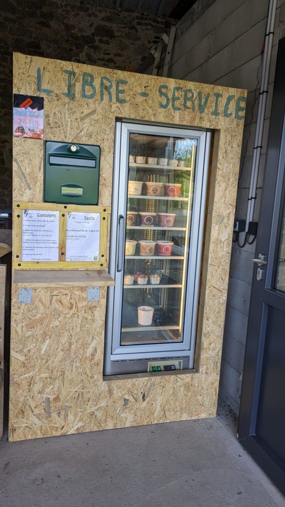 Gourmand & Givré : Ferme A3F vous propose désormais un libre service 24/24. Celui-ci est rempli de pots de 500 ml et de pots 90 ml de glaces et sorbets. Vous choisissez votre produit et vous laisser le montant de vos achats dans une enveloppe dans la boîte aux lettres (uniquement par espèce ou par chèque).