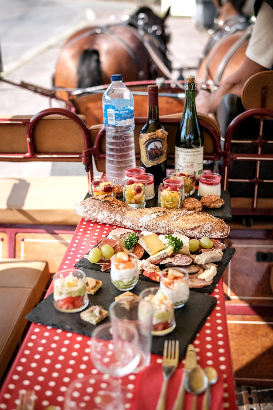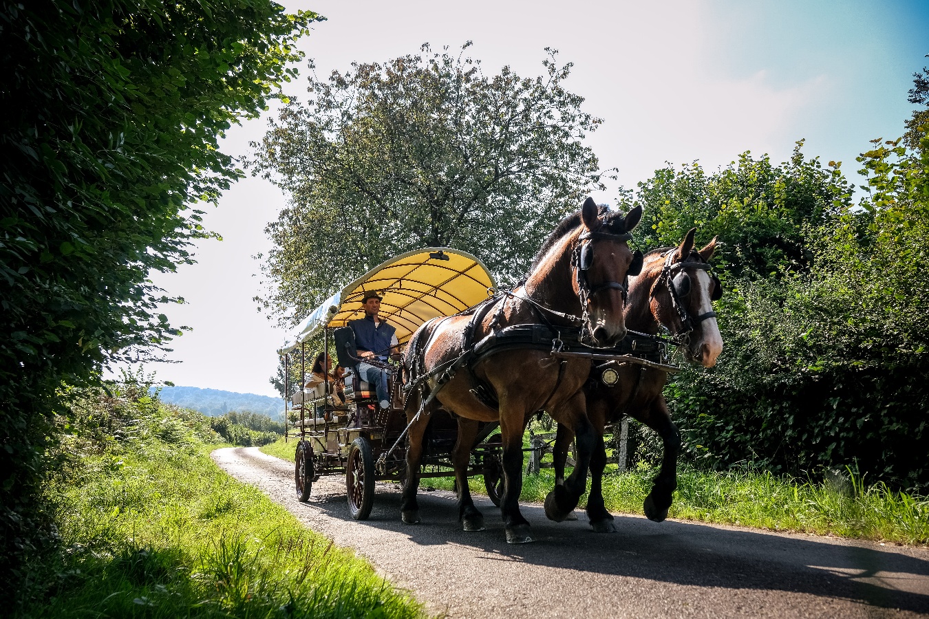 Nous vous proposons également des balades gourmandes (produits du terroir) à l’heure du repas ou du goûter à bord de notre calèche.