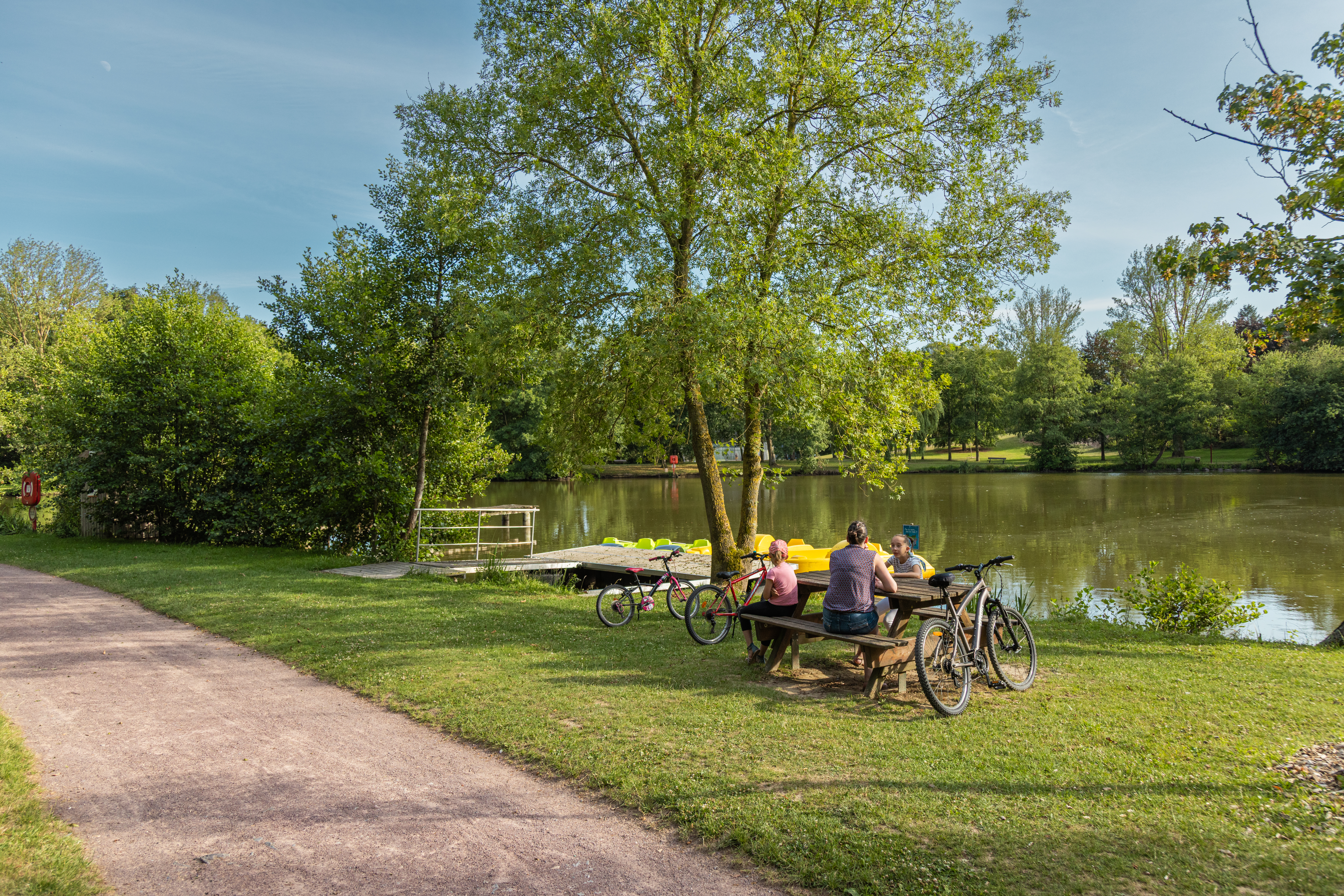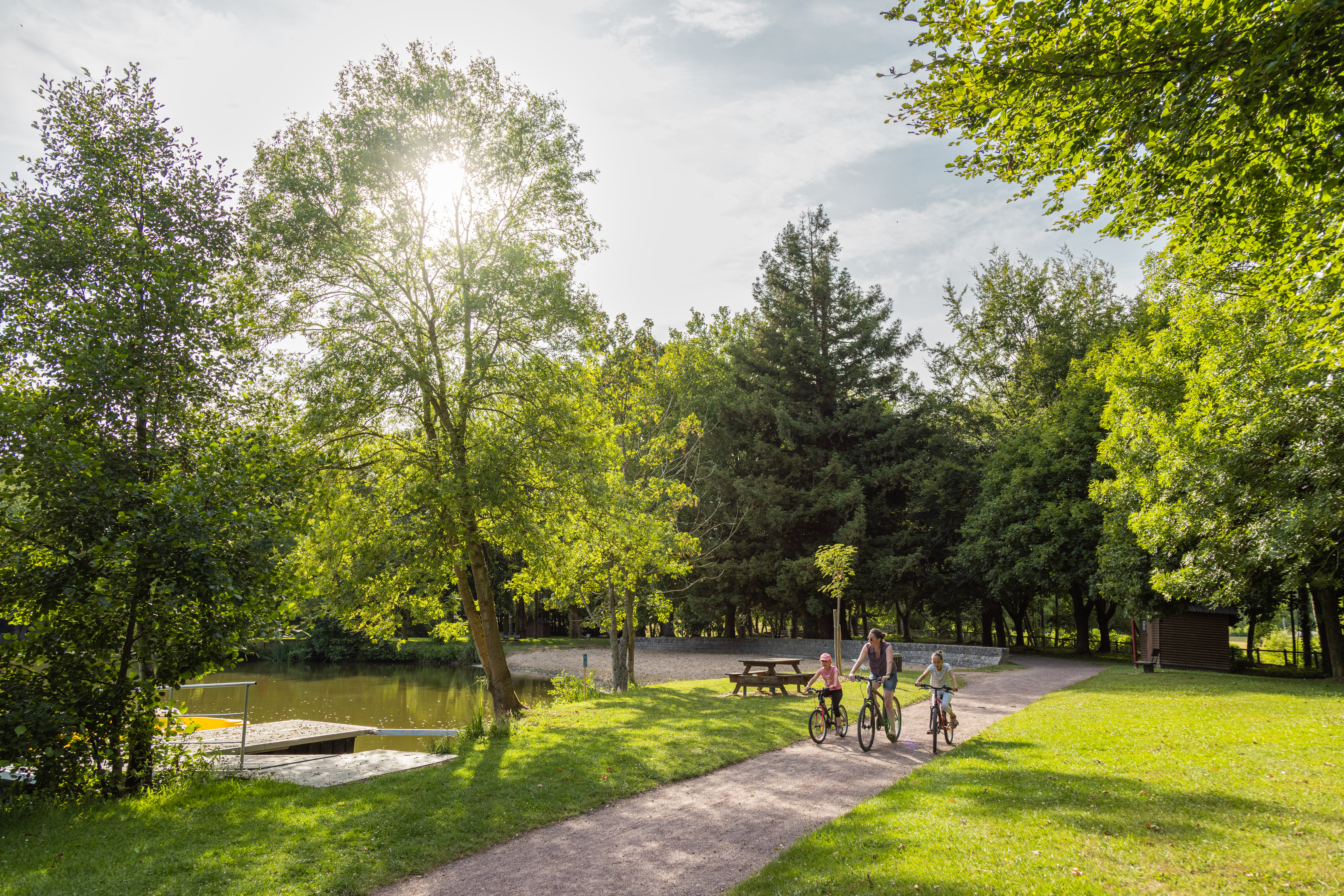 Parc de 10 ha avec 5 courts de tennis (dont un couvert, réservation au 02 31 69 02 93). Terrains de pétanque, jeux pour enfants, kiosque à musique (concerts l’été), promenades. Etang de pêche (plan d’eau 1ere catégorie, une seule canne autorisée) pour les détenteurs de la carte Truite Condéenne ou EGHO (journalière, hebdomadaire ou annuelle). Pêche autorisée tous les jours entre le 14 mars et le dimanche 20 septembre 2026.