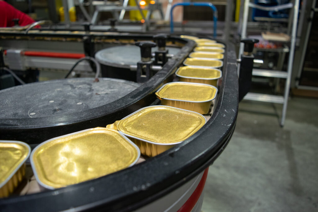 La visite nous permet de suivre tout le processus de fabrication, étape par étape. De la fabrication des effilés, émincés, mousses et terrines pour chiens et chats, à leur mise en barquettes, pochons ou briques, en passant par la stérilisation, l’étiquetage et l’expédition. Rien n’est laissé au hasard. Chaque étape est savamment orchestrée.