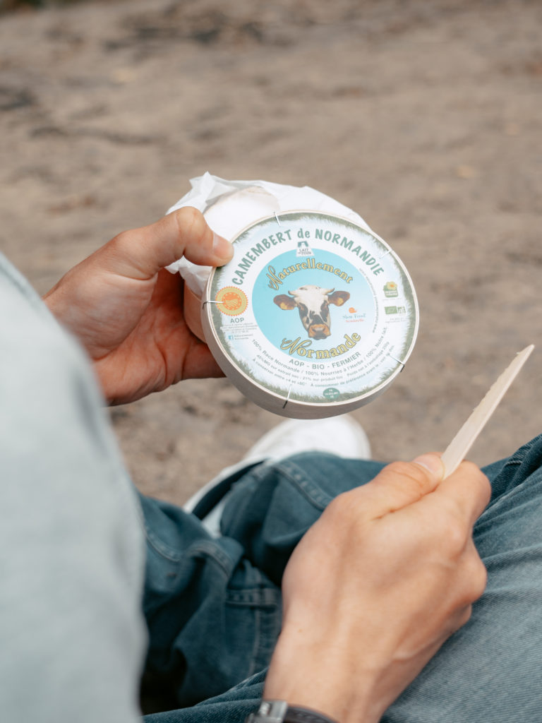 - Un camembert fermier chez Naturellement Normande à Landelles-et-Coupigny (5,50€ /pièce) : ce camembert fermier est bio et AOP (Appellation d’Origine Protégée), il n’est réalisé qu’à partir de lait de vaches normandes.