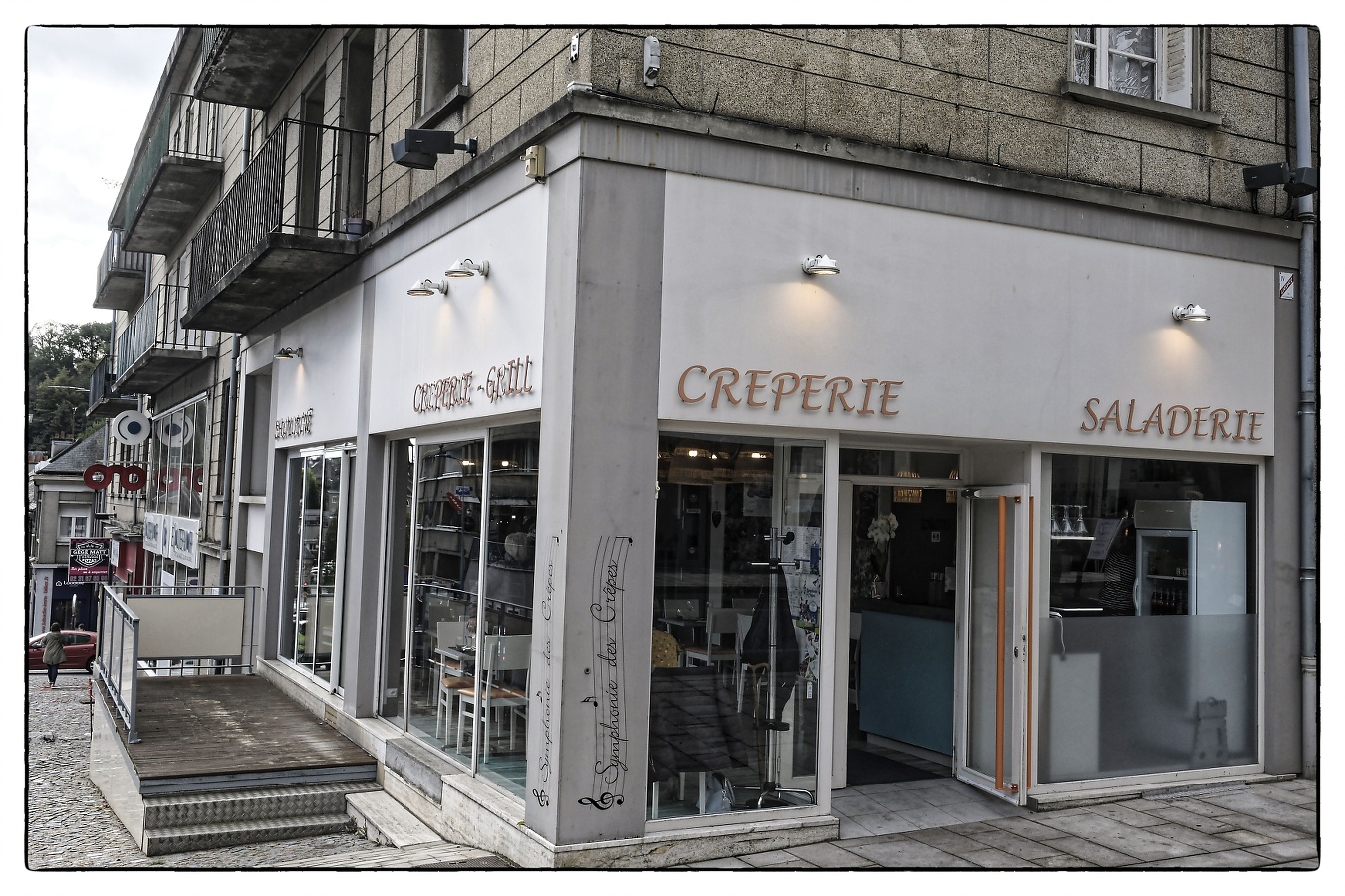La crêperie Symphonie des crêpes, située en plein cœur de Vire propose de véritables crêpes et galettes bretonnes. Le restaurant propose différentes spécialités : La galette viroise à l’Andouille de Vire, la galette complète ainsi que des crêpes sucrées pour bien terminer son repas. Vous pourrez également déguster des salades composées, ou des viandes. L’équipe vous accueille avec plaisir dans un endroit chaleureux, lumineux et accueillant dans une ambiance familiale.